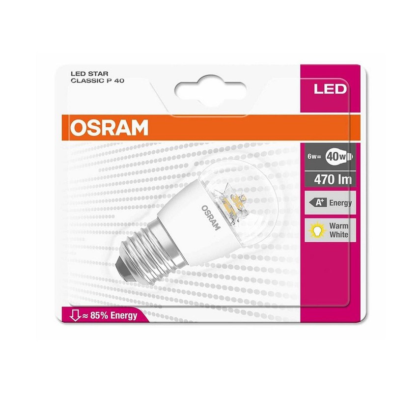 OSRAM LED Star Classic P / LED Lamp in Teardrop Shape with E27 Base / Not Dimmable / Replaces 40 Watt / Clear / Warm White - 2700 Kelvin / Pack of 6