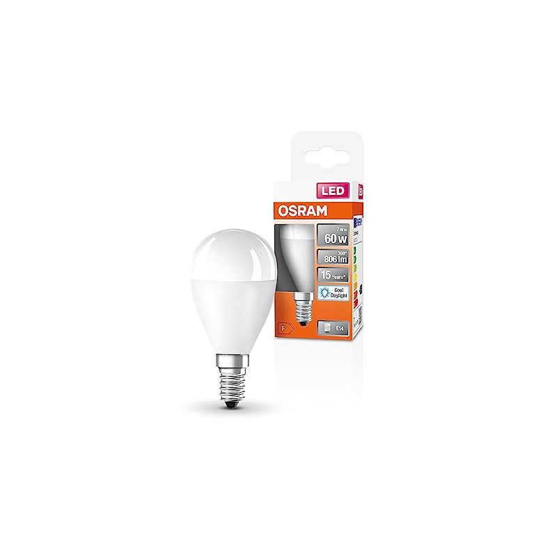 OSRAM LED Star Classic P60 LED Bulb for E14 Socket, Teardrop Shape, Matte Look, 806 Lumens, Daylight White (6500K), Replacement for Conventional 60W Bulbs, Non-Dimmable, Pack of 1