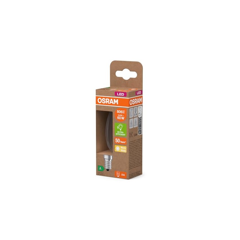 Osram Osram Energy Class LED-Lampe in klassischer Minikerzenform, 3.8 W / 806 lm, EEK A, warmwei?es Licht (2700 K), CRI 80, aus klarfarbenem bleifreiem Glas, E14 Sockel, IP20, 35 mm Durchmesser.