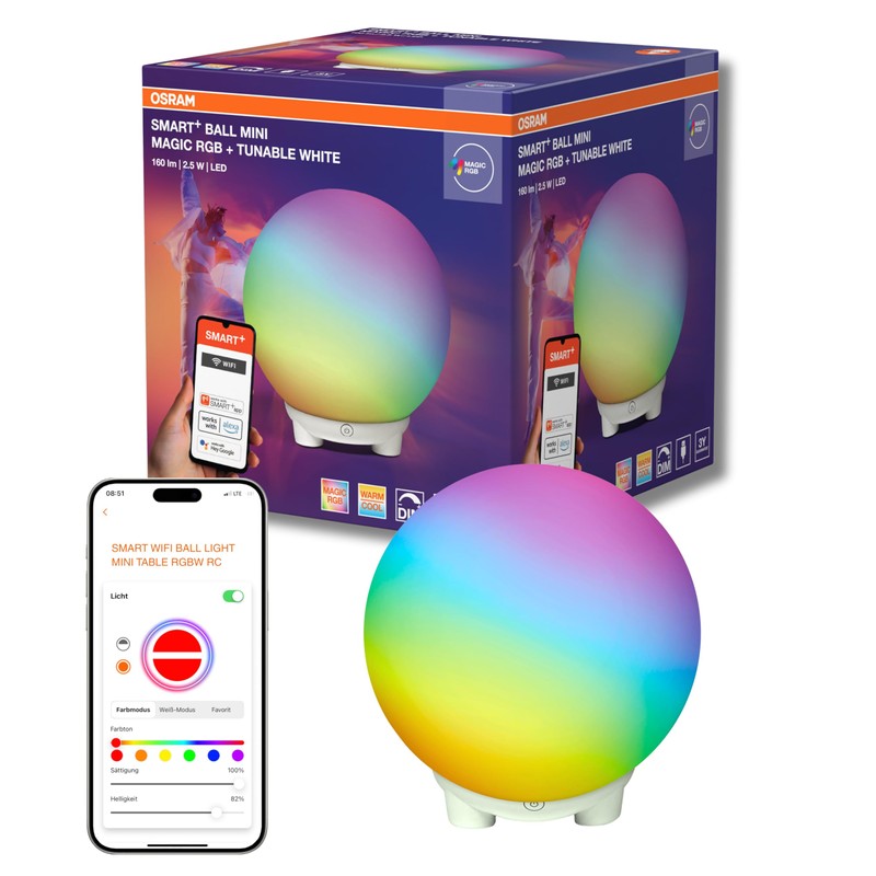 OSRAM Smart+ WiFi Ball Light Mood & Table Lamp, Black, 4 W, 130 lm, Dynamic Magic RGB Light Effect, Two Light Sources, Dimmable, Long Life, Easy Assembly, App Controllable, IP20