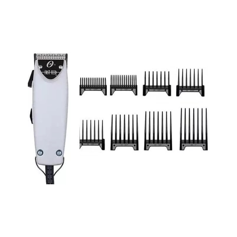 Oster Fast Feed Brushed Aluminum Hair Adjustable Pro Clipper + 8pc Combs Set