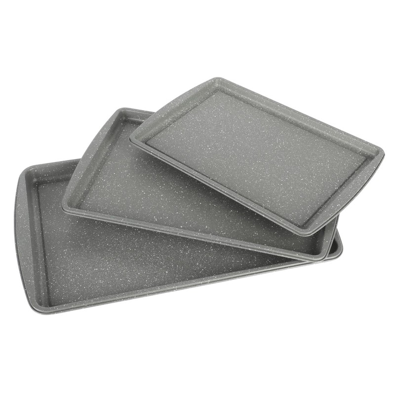 Oster Greystone 3 Piece Carbon Steel Nonstick Kitchen Baking Pans/Cookie Sheet Bakeware Set, Premium PFA Nonstick Material W/Grey Speckle