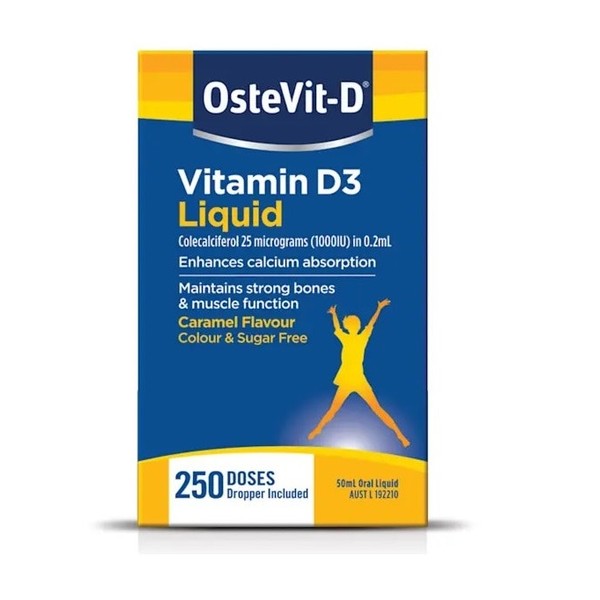 OsteVit-D liquid contains 1000 IU per 0.2 mL. It is a convenient way to take Vitamin D for those people who find swallowing tablets difficult.