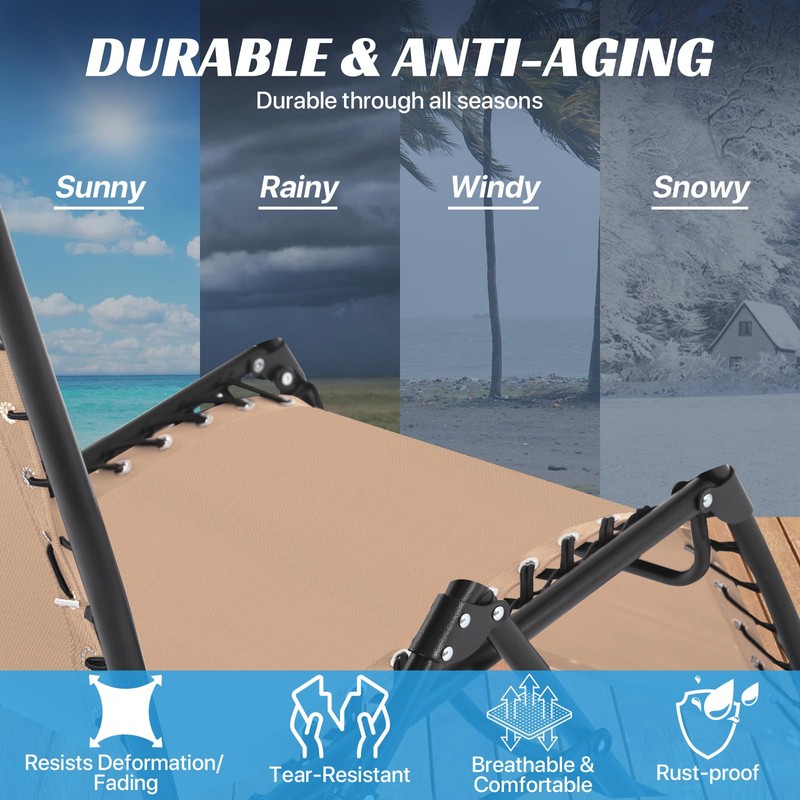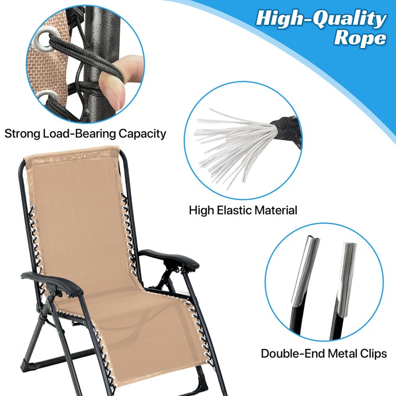 - 【Durable & High Quality】Our zero gravity chair replacement fabric made of high-quality density textilene fabric, thick and wear-resistant, fade resistant. The gravity chair replacement cord is made of reliable strong elastic high-quality nylon rope, good elasticity, strong and stable, it will support weight up to 250 pounds with most anti-gravity chair frame.