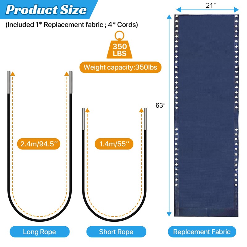 - 【What Your Will Get】The package come with 1 Pcs replacement cloth(63 x 21inch/160 x 53cm), 4 PCs x Tie ropes(2 long& 2 short). Instead of buying a new recliner, you just need to repair your gravity chair with this replacement kit. If you have any questions with the patio chair replacement fabric and cord kit, please feel free contact us and we will reply you in 24 hours. We are always here to help.