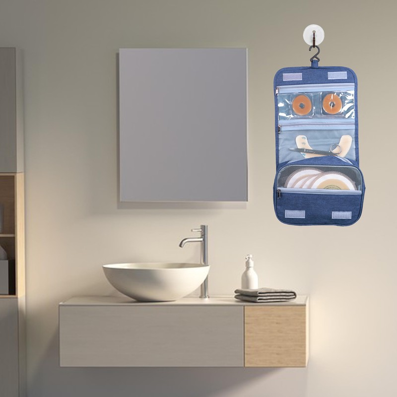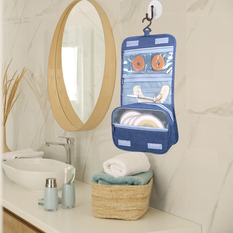 Ostomy Colostomy Travel Bag,Hanging Organizer Bag Accessory Storage Bags Pouch for Ostomy Supplies (Grey) (Navy Blue)