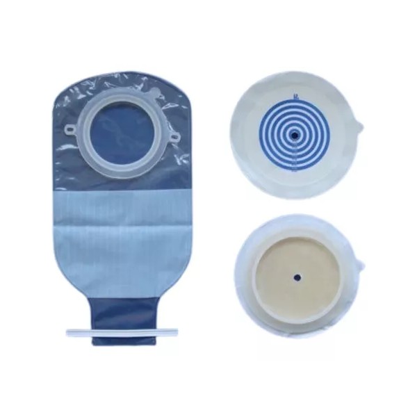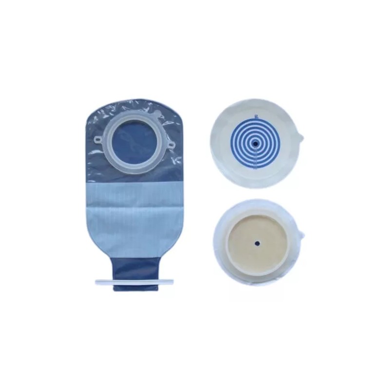 La presentación del equipo es de 4 bolsas y 4 aros con un cinturón de sujeción y guía recortable para diferentes diámetros de estomas.