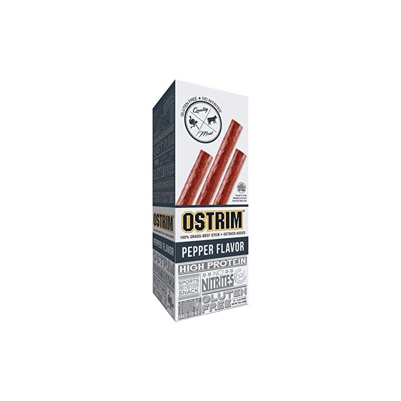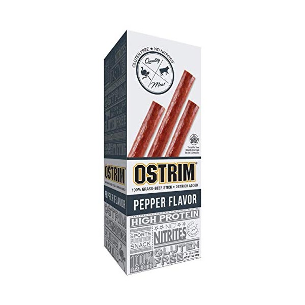 Ostrim Grass-Fed Beef & Ostrich Jerky Snack Sticks-Pepper Flavor, 1.5 oz (Pack of 10)