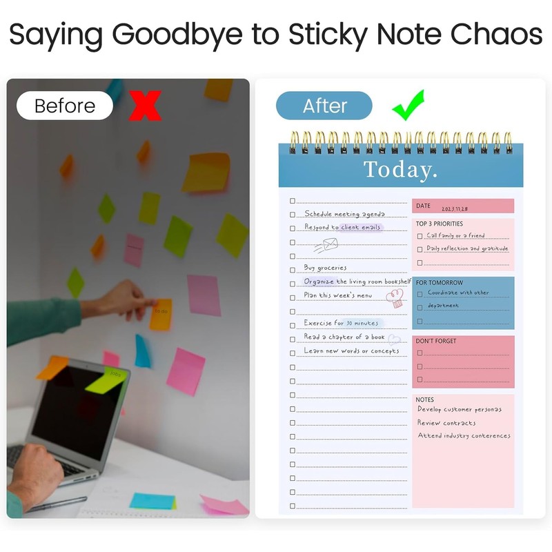 - đź’Ž[Boost Your Productivity] - This 9.92" x 6.53" daily to do list provides plenty space for writing your important appointments tasks , which makes you more focused and productive than ever . The thick cardboard backing makes your planner more durable for long term using.