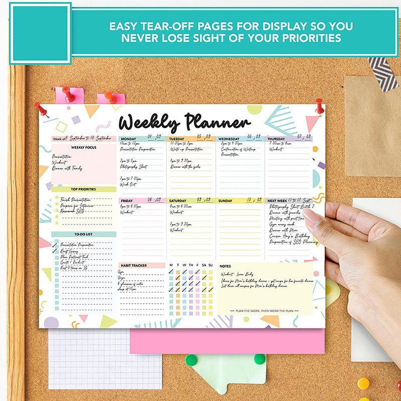 2. The weekly planner is undated, allowing you to start planning at any time. Each notepad has 50 pages, so you can plan a day, week, or month.