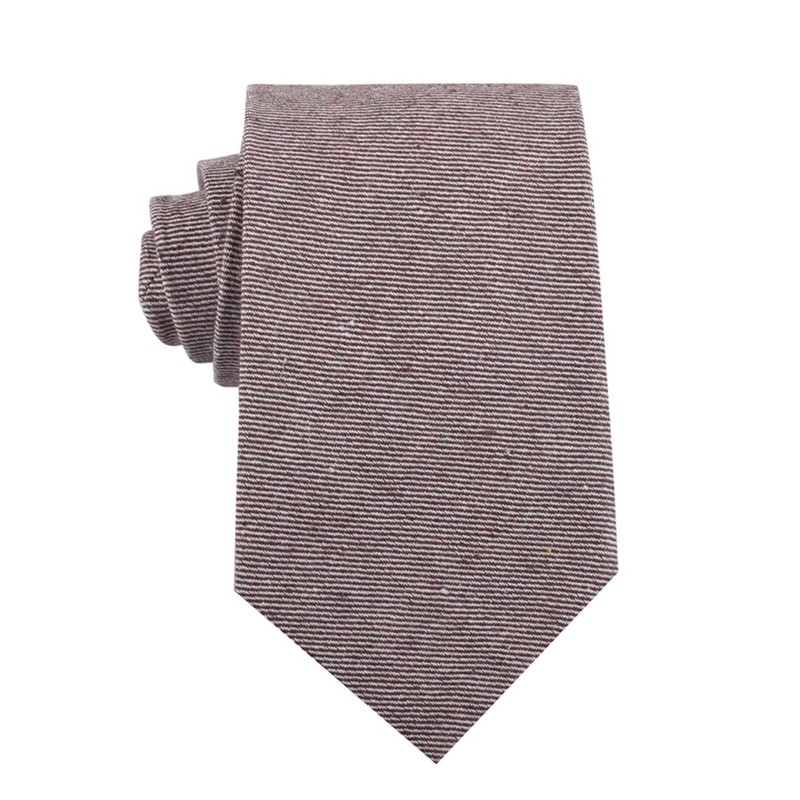 OTAA Brown & White Twill Stripe Linen Necktie Casual Ties for Men - Perfect Neck Tie for Groomsmen Wedding Ties or Formal Occasions - Ideal Gifts for Him