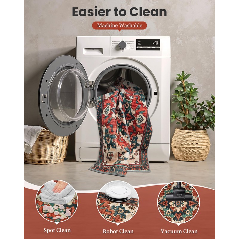 • Machine Washable Ease:Enjoy easy maintenance with our machine washable rug. Just toss it in the wash for a refreshed look, saving you time. Its quick-drying fabric is perfect for homes with pets and kids. Regular vacuuming keeps it looking pristine with minimal effort.