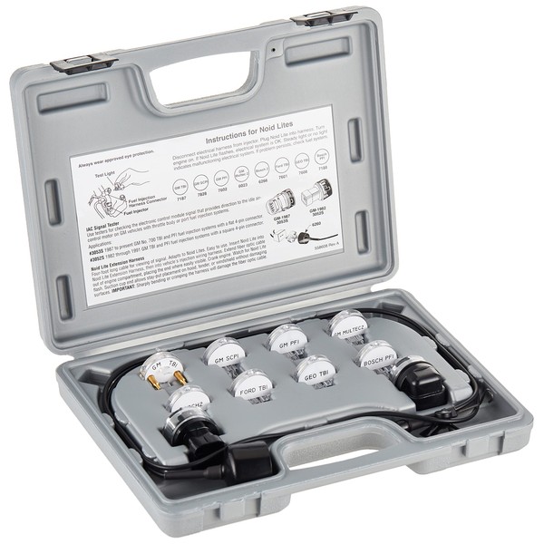 - Juego ampliado de ocho cubiertas específicas Noid Lites: GM PFI, Ford TBI, Geo TBI, Bosch PFI, GM TBI, GM SCPI, y ahora nuevas aplicaciones de Bosch 2 y Multec 2, además de dos probadores GM IAC (aplicaciones planas y cuadradas de cuatro conectores) con LED rojo y verde