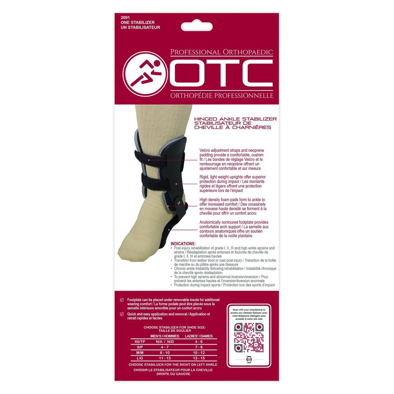 OTC Hinged Ankle Stabilizer, Adjustable Stirrup Brace with Rigid Stays for Sprains and Injuries, Walker Boot Transition, Black, Small