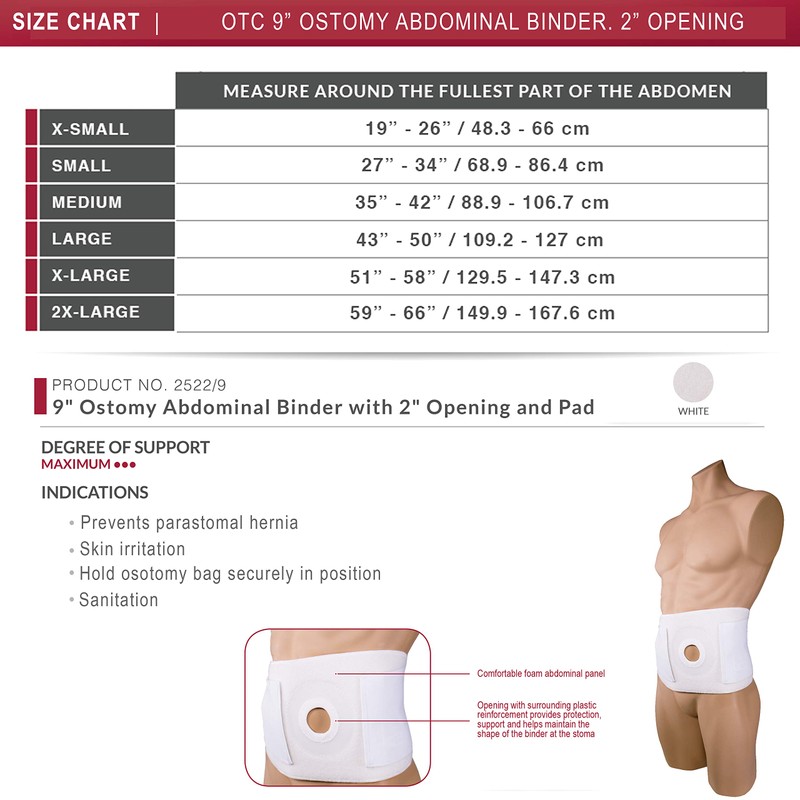 OTC Ostomy Abdominal Binder, Stoma Support, Henia Colostomy, 9" Belt, 2" Opening Pad, Medium