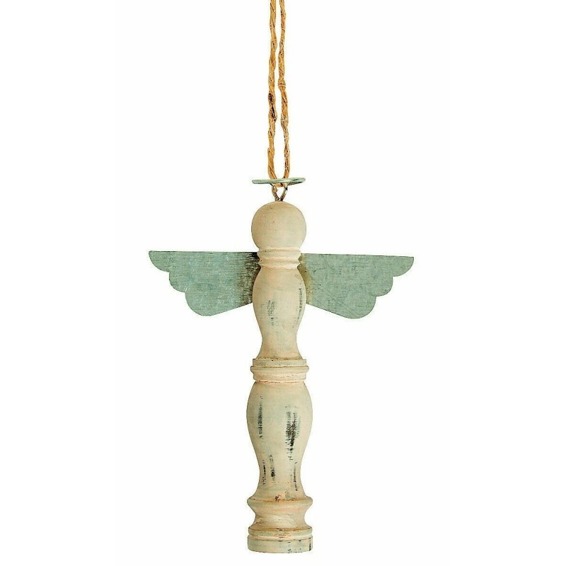 otc Set of 4 Rustic Shabby Chic Spindle Angel Ornament Wood and Metal 5" x 3.5" New