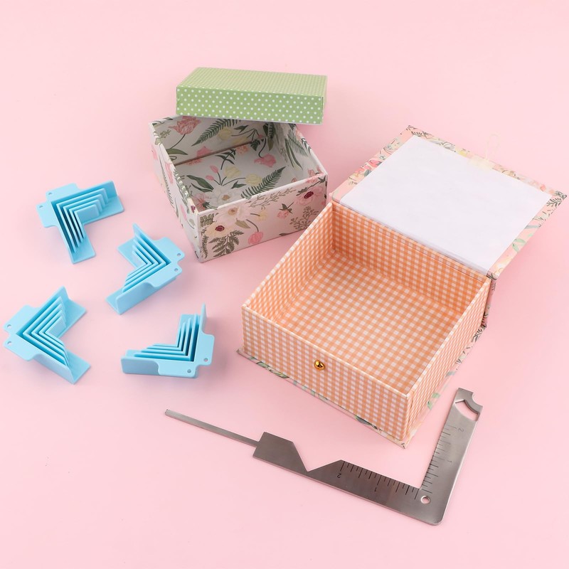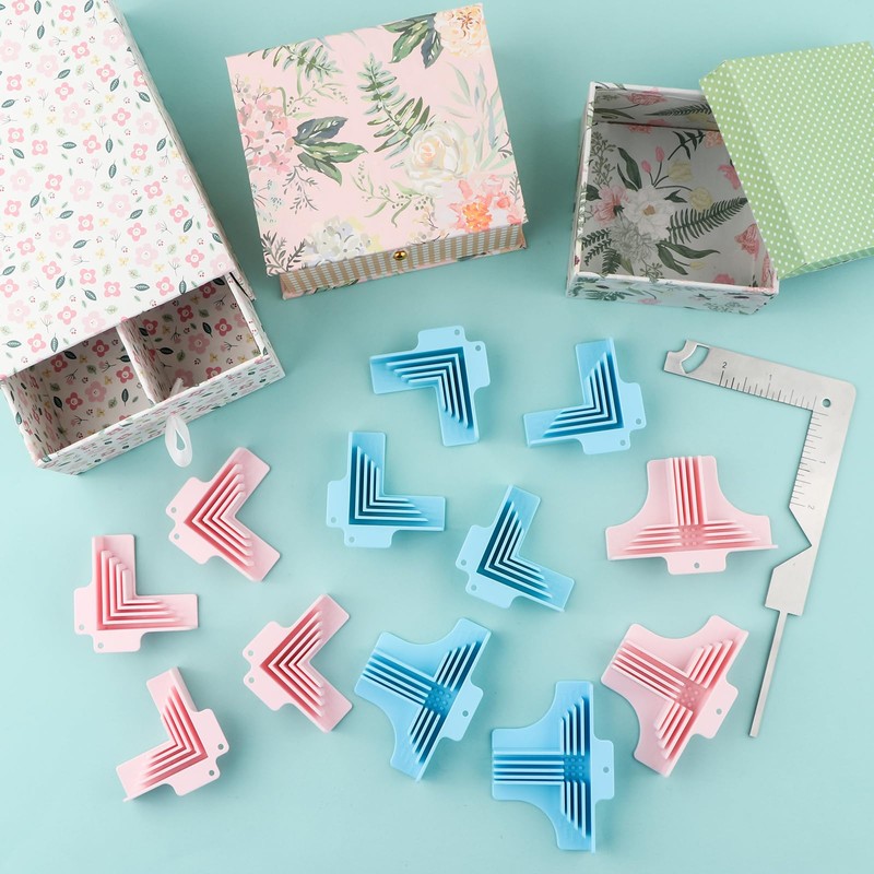 - [CARTONNAGE CORNER HOLDING TOOL FOR BOX MAKING]--Corner/Divider Assembly Clamps Stainless Steel Metal Bookbinding Cover Tool for Chipboard Boxes set includes 9pieces that adapt to different sizes in order to adapt to the different thicknesses of cardboard,guides work with sizes being 1mm,1.5mm,2mm and 3 mm