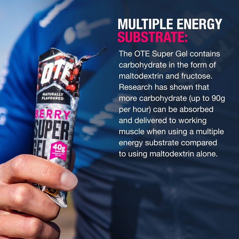 OTE Super Gel - Energy Gels for Running & Cycling - Dual Source Energy with 40g of Carbohydrates - Superior Glucose Fuel for Swimming, Triathlons & Endurance Sports - Box of 12 (Berry)