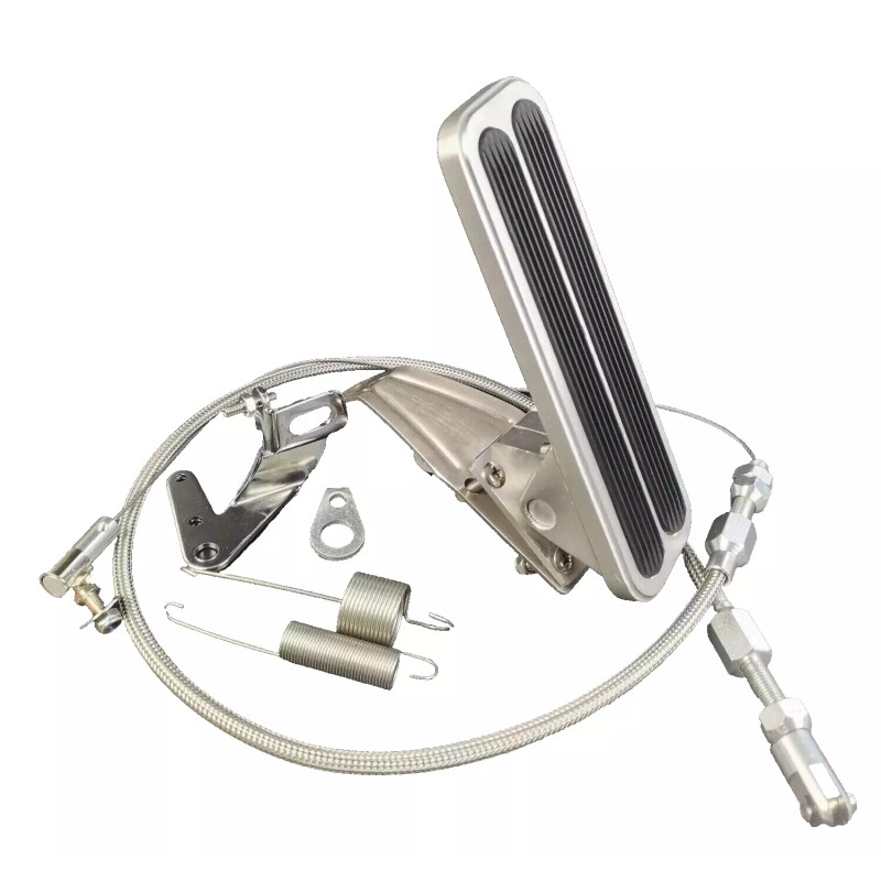 Billet Aluminum Floor Mount Gas Pedal: Designed to bolt into stock location Change from rod style throttle to throttle cable Spring loaded like OEM design Splined for right or left adjustment of foot pad Designed to convert original rod linkage to modern throttle cable system. Rubber inserts included Pedal is universal (mounts to the floor of any vehicle) (6-3/4" x 2") Stainless Steel 24" Throttle Cable SS Housing Aluminum Pedal: 24" throttle cable has a braided stainless steel housing and features Billet Ends. The Throttle cable is 36" while the Housing is 24", but both can be cut to your desired length this is a Universal Cable that can be used with any aftermarket Billet and Steel Gas Pedals, will work with all Small and Big Block Ford Chevy and Mopar Engines. (265 273 318 340 360 305 327 350 400 455 426 413 440 454 502 472 283 400 383 429 428 460 289 302 351W 351C 351M 400M 352 360 390 406) The Bracket/Spring Set: Includes a Chrome plated Bracket as well as SS Throttle return springs and a forward locating tab. Package includes: you will get what the picture shows. P Professional Installation is Highly Recommended (No Instruction and Wiring Diagram Included) |
