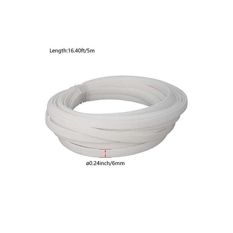 Othmro 5m/16.4ft PET Expandable Braid Cable Sleeving Flexible Wire Mesh Sleeve White
