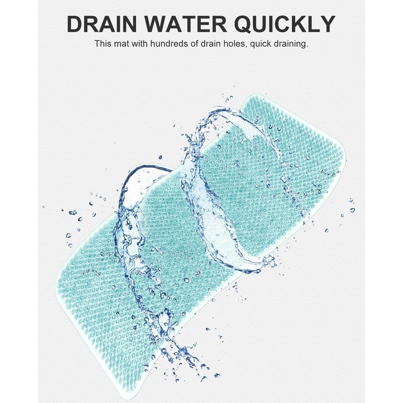 • Quick to Drain: This anti slip shower mat has lots of holes so the water drains away easily. This tub mat has holes throughout do water doesn't just sit on top. It drains thru and dries between uses