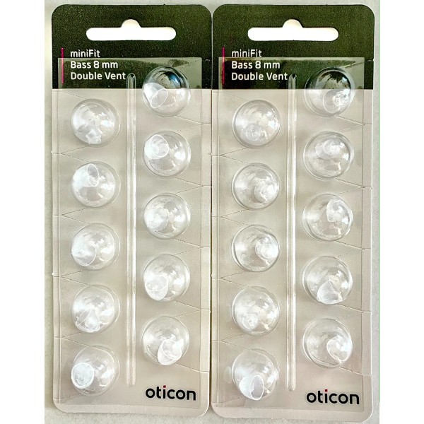 Oticon 2 Pack Oticon miniFit 8mm Bass Double Vent Domes For Hearing Aids/20 Domes Total