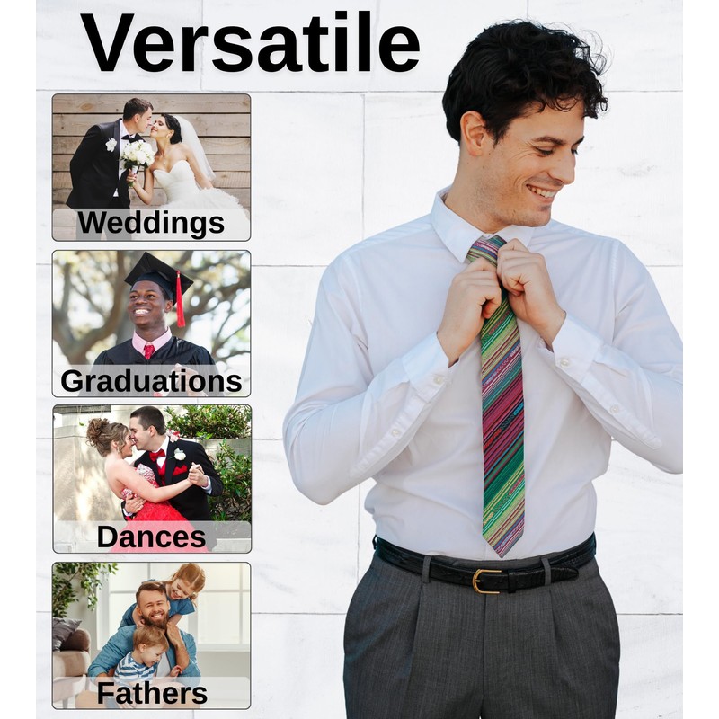 - All Occasions: These ties are great for Weddings, Graduations, Homecoming, Dances, Grooms and Groomsmen, Father’s day gifts or for Missionaries. This is one tie your dad will be happy to get for Father's Day. We offer many unique color patterns to help you stand out in a crowd. We also offer more traditional options for those who prefer to blend in with the crowd. No matter your preference, we got you covered- from introvert to extrovert and everyone in between.