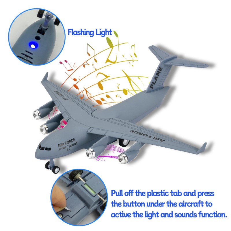 Highly Restore the Real Airplane:The toy military airplane are made in 1:300 scale, with the use of high temperature electrostatic baking technology, the color is delicate and full. This toy airplane wihting streamlined body for unhindered play. Featuring a bump and go function, sound and light elements give the most true feeling while playing.