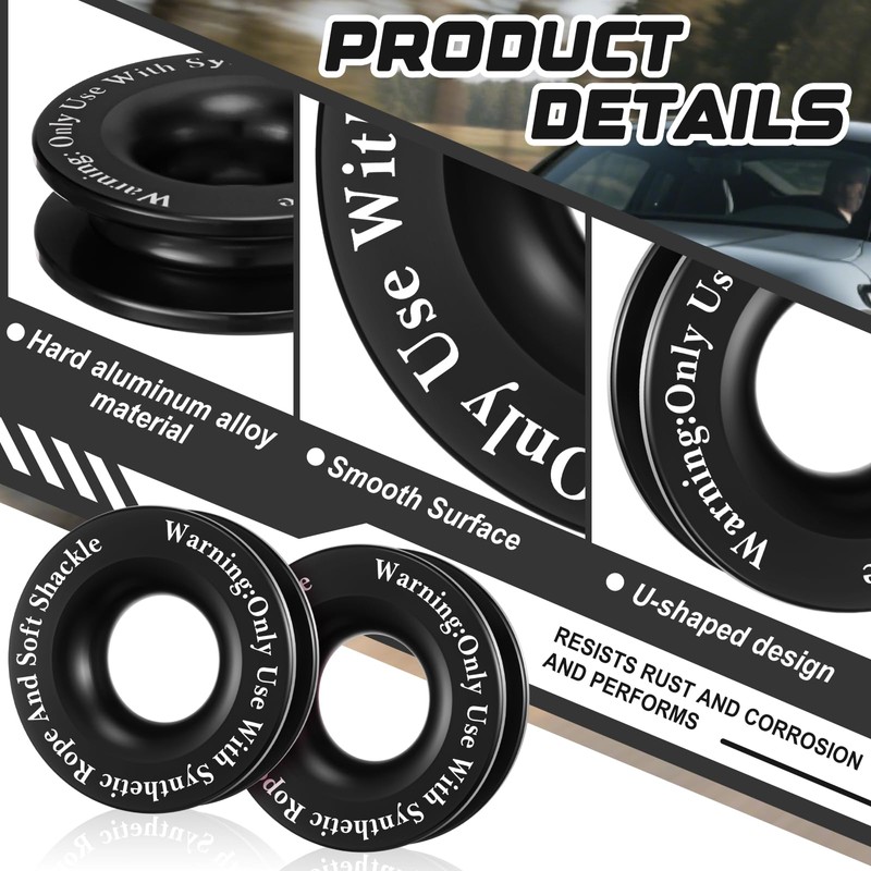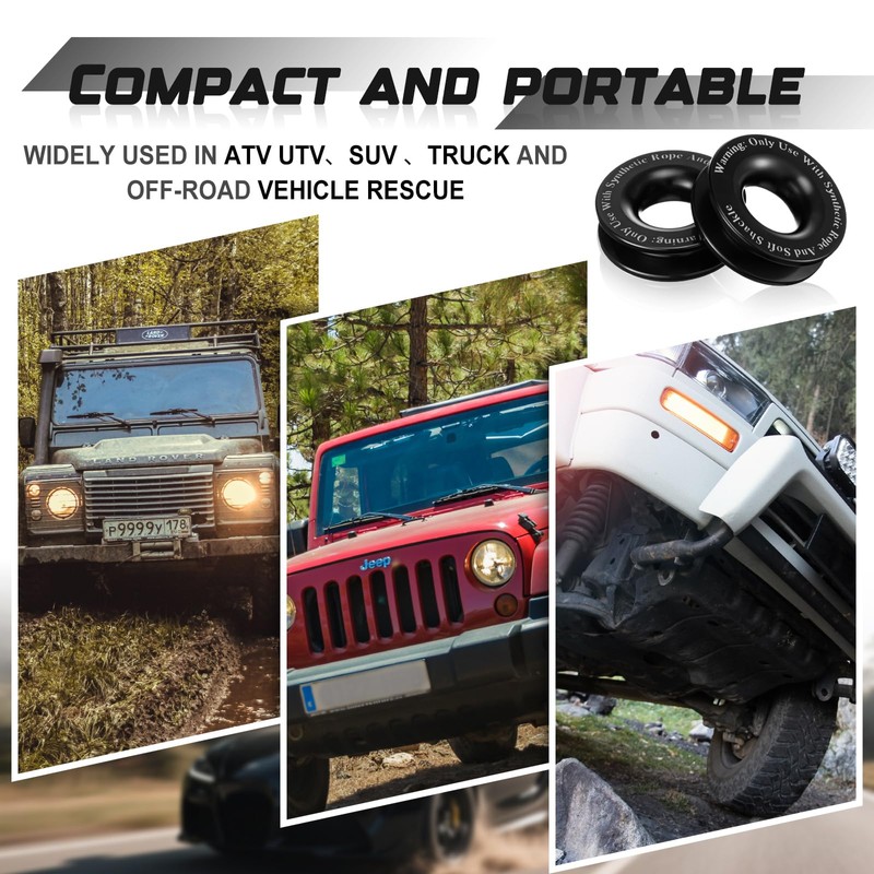 - Robust Material: fabricated from aluminum alloy, the recovery ring resists rust and corrosion, performing reliably in rain, snow, and mud; Undergoing heat treatment, it achieves a maximum breaking strength of 66, 000 pounds, surpassing ordinary steel pulleys and ensuring dependable operation in demanding off-road rescues