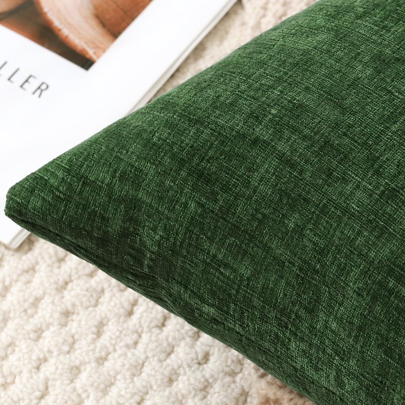 OTOSTAR Chenille Throw Pillow Covers 18x18 Inch Soft Farmhouse Green Decorative Pillow Covers Solid Square Cushion Case for Sofa Bed Living Room Couch Home Decor (Green)