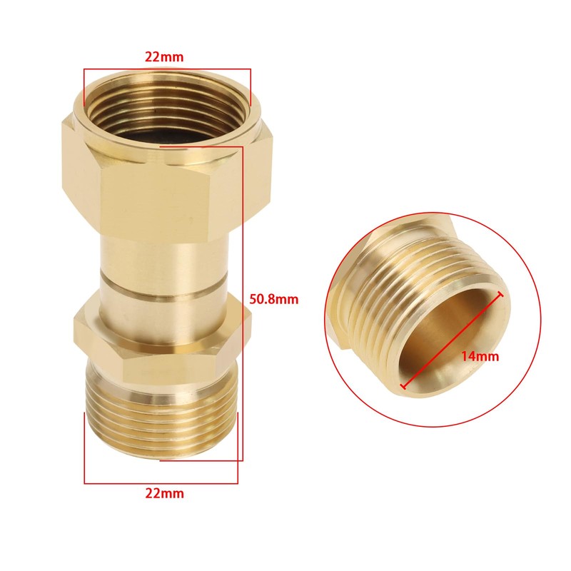 - 1. [Attention] The inner diameter of the M22 14 pressure washer swivel is 14 mm. With a washer diameter of 15 mm, leaks may occur. Not compatible with 15mm M22 threaded connectors.