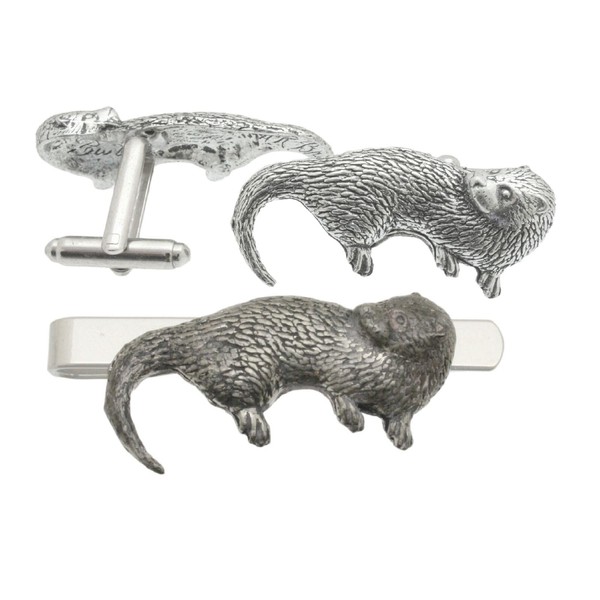 Otter Cufflinks and Tie Bar Slide Gift Boxed Set