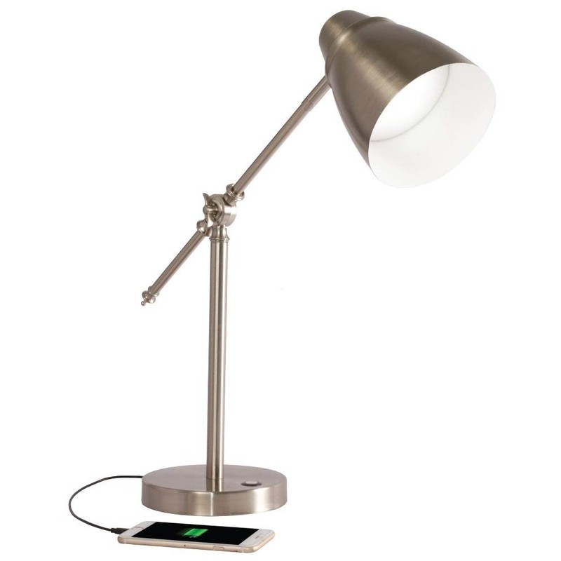 OttLite Harmonize LED Desk Lamp - 2.1A USB Charging Port, 3 Brightness Settings, Brushed Nickel