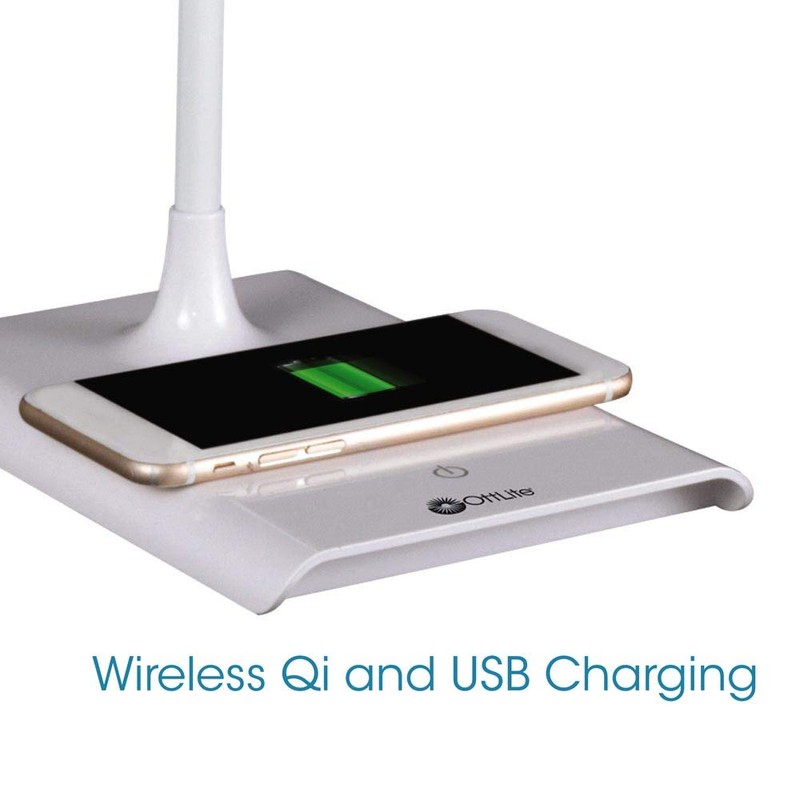 - WIRELESS CHARGING BASE: Easily charge Qi-compatible phones and smartwatches. A 5V, 2.1A USB port also fully charges tablets and other USB devices, making this light perfect for dorms and offices. It is a great gift for college students!