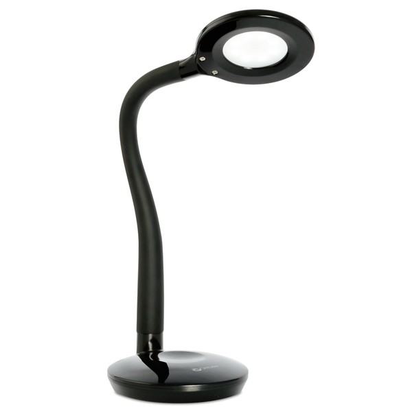 Stylish, circular LED lamp provides space-saving convenience and features adjustable brightness with the touch of a finger. With a rubberized soft- touch, flexible neck, you'll enjoy TOTAL flexibility - ideal for studying, reading, crafting and more.