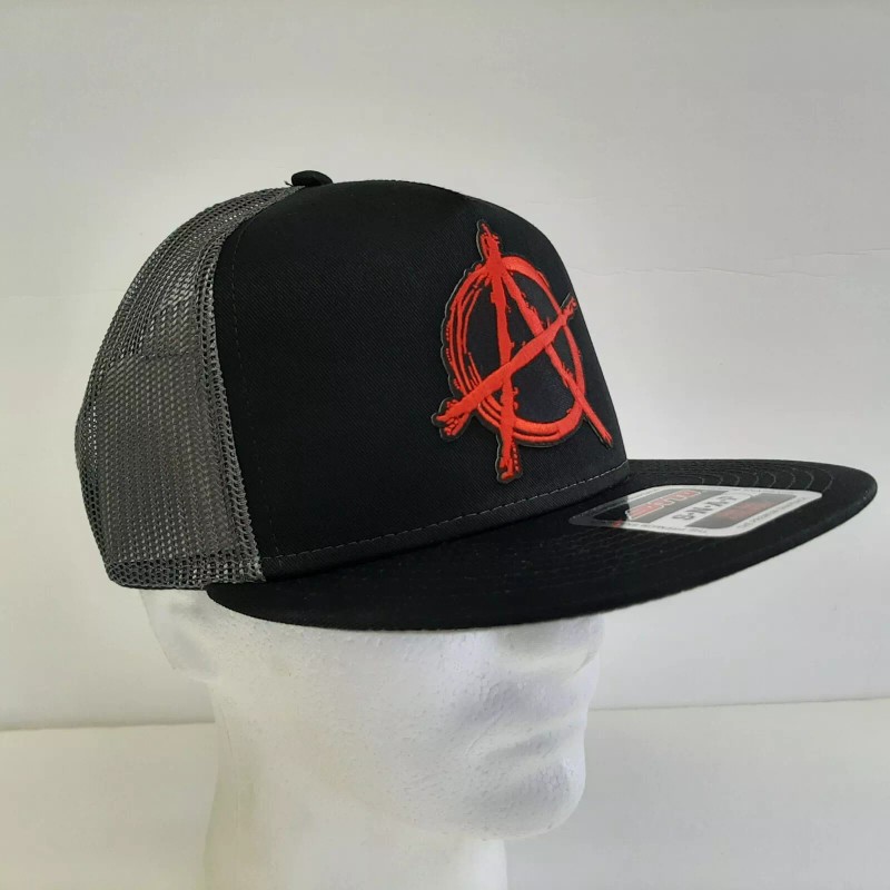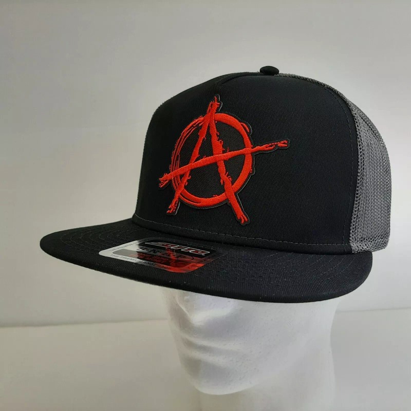 Otto Anarchy Embroidered Patch Flat Bill Trucker Mesh Snapback Black OSFM Otto