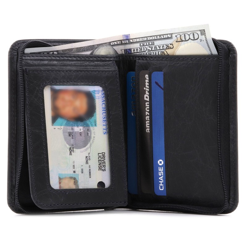 - Slim, Zippered Design – A handsome men’s wallet, each bifold features a premium zipper that keeps money, driver’s license and credit cards safe and secure.