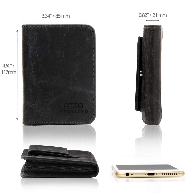 Otto Angelino RFID Blocking Men’s Zippered Bifold Wallet - Italian Cowhide Leather - Slim