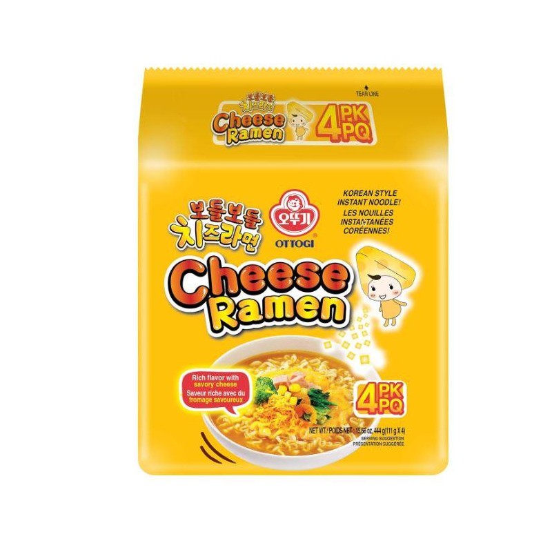 Indulge in the rich and savory flavor of Korean-style instant noodles with [OTTOGI] Cheese Ramen. Perfect for cheese lovers, this instant noodle pack comes with a pack of four, each containing 111g of cheesy goodness.