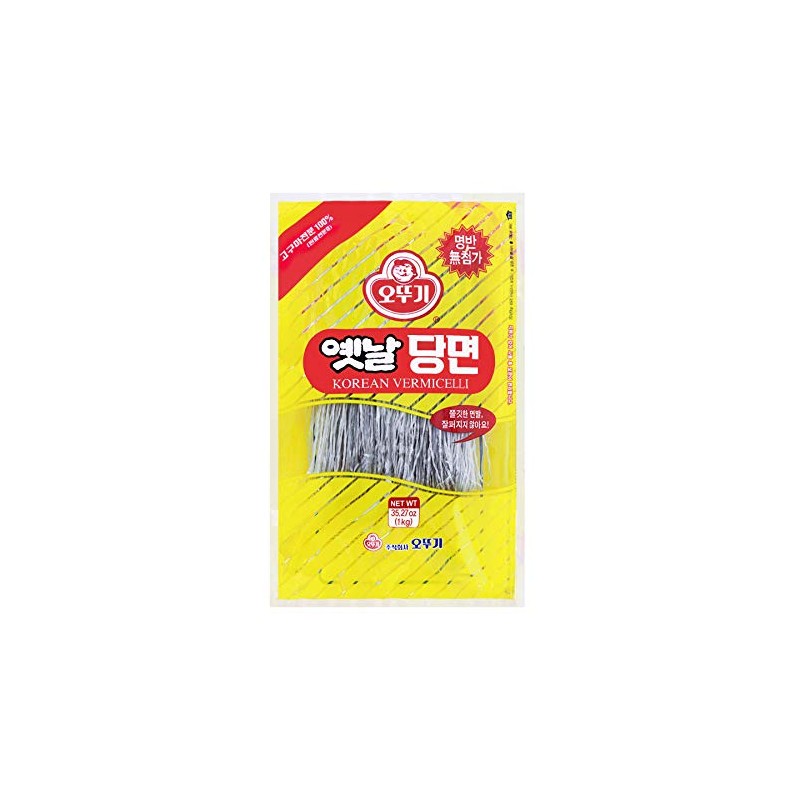 Ottogi Yetnal Dang Myun is made from 100% sweet potato starch. The noodles contains NO alum powder which are found in lower quality glass noodles. Dang Myun is a translucent brownish gray with a shine in their dried format, and which turn transparent when cooked. Dang Myun is used as a main ingredient for a very popular Korean dishes, "Japchae" (stir fried glass noodle) and Mandu (dumplings). Glass noodles are widely used in Tang (soup) and Jungol (table cooking soup) dishes because they do not get mushy easily when boiled in broth, along with other ingredients. The texture is more elastic than other kinds of noodles.