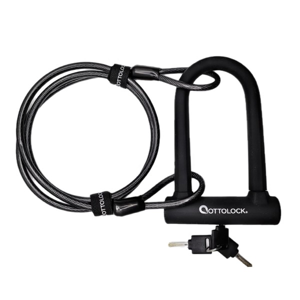 OTTOLOCK Sidekick Compact U-Lock and Cable Bundle - Heavy Duty Anti Theft Bicycle U-Lock with Keys, Silicone-Coated, Bike Accessories, Black
