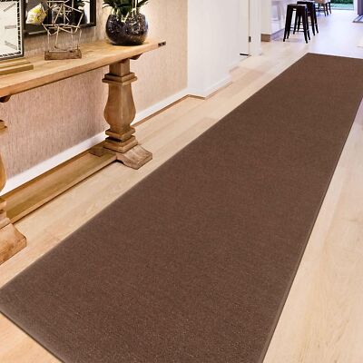 Machine Washable Modern Solid Design Non-Slip Rubberback 3x10 Traditional Runner Rug for Hallway, Kitchen, Bedroom, Living Room, 2'7" x 9'10", Brown