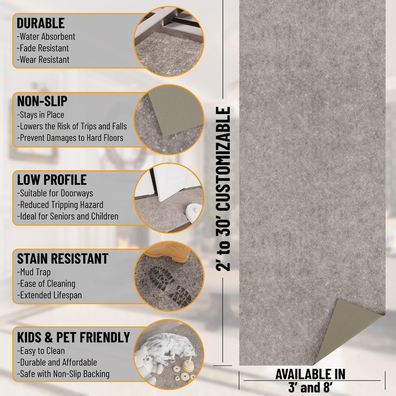 • [CUSTOMIZABLE]: These rugs are easy to cut into any size to fit your exact measurements. Cut them to your desired size and add the finishing touches to your hallway, entryway, garage, office, living room, patio, deck, finished basement, and laundry room.