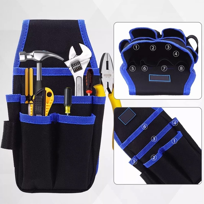 Oubit Bolsa de herramientas de electricista, Bolsa de herramientas, Bolsa de herramientas de tapa abierta, Kit de cintura de tela Oxford multifuncional para reparación profesional Azul