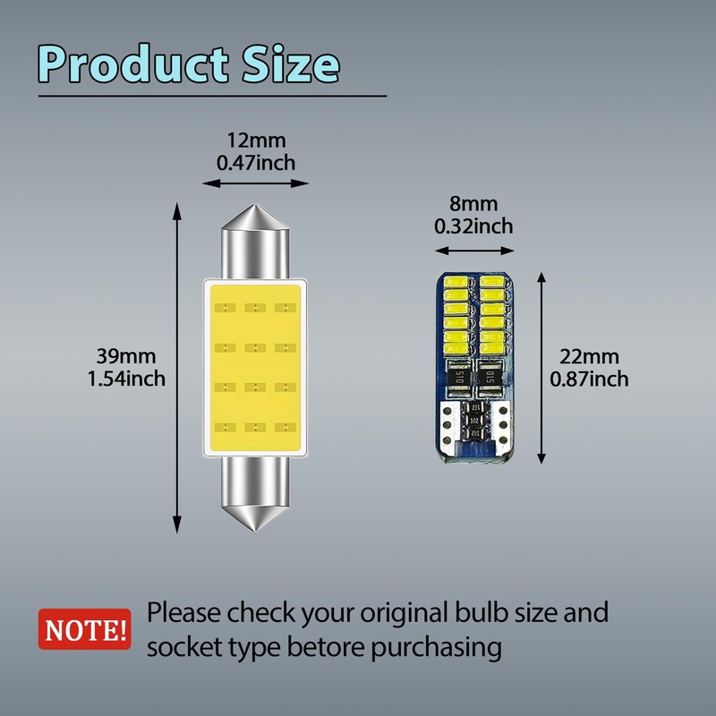 - Wide Application - The bulb set has a wide range of applications, not only suitable for car ceiling lights, but also can be used as exterior taillights, parking lights, license plate lights, side marker lights, etc