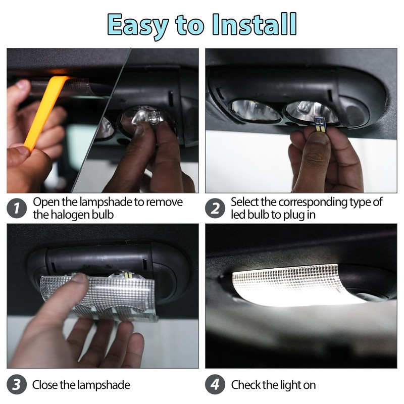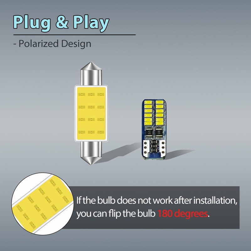 - Easy to Install - Comes with a professional removal tool to safely replace factory bulbs without damaging vehicle interior components. It is worth noting that you can turn over the bulbs for 180 degrees if they don't work after installing