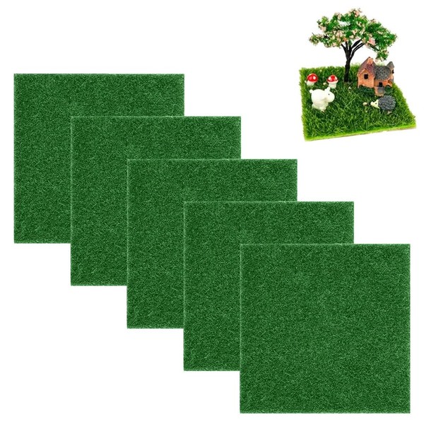 5 Pieces Model Making Laws: This set contains 5 pieces of artificial grass, perfect for miniature gardens and DIY projects. With a size of 15 x 15 cm and a height of 5 mm, it is ideal for creative crafts and miniature landscapes.