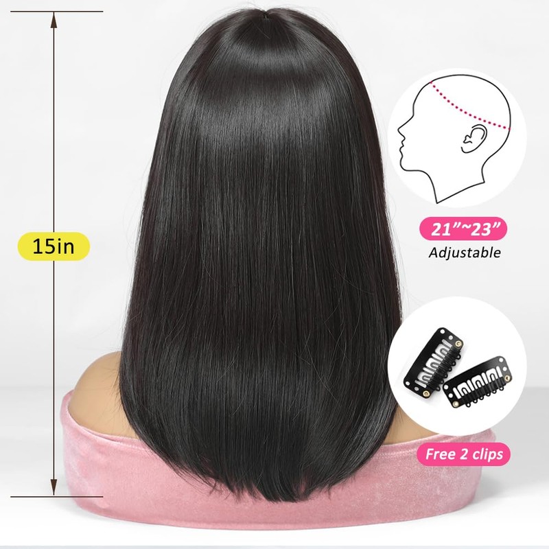 OUFEI Black Bob Wig With Bangs Short Straight Wig For Women Synthetic Hair Wigs for Daily Party Cosplay Wear