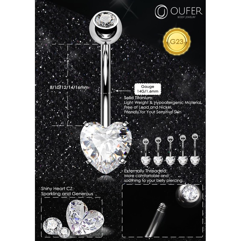 - Heart belly button piercing ring: 1 pc 14g 14mm balls heart belly button piercing titanium with clear CZ for that extra shine, now you can have the power of fashion on your side with this fascinating CZ navel ring.