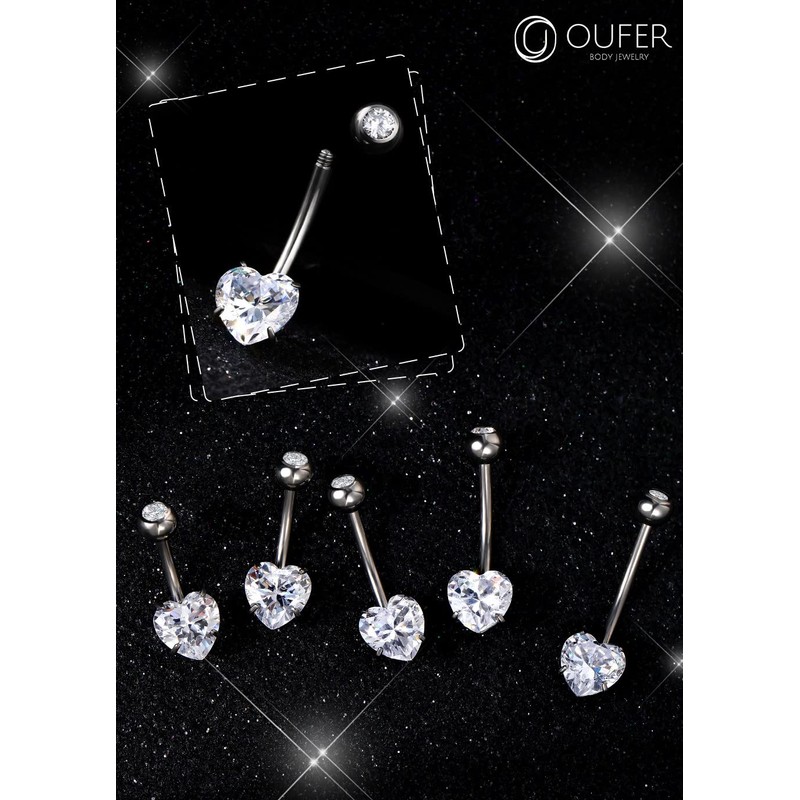OUFER 14G Belly Button Piercing Titanium Heart Piercing Long Short CZ Gemstone Balls Belly Button Piercing Navel Bars Silver 1.6 mm Navel Ring Woman Gift Jewellery, Titanium, silver, gemstone
